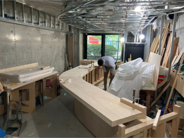 先日東京日本橋の鮨店に入れた桧カウンターの施工中の画像です。