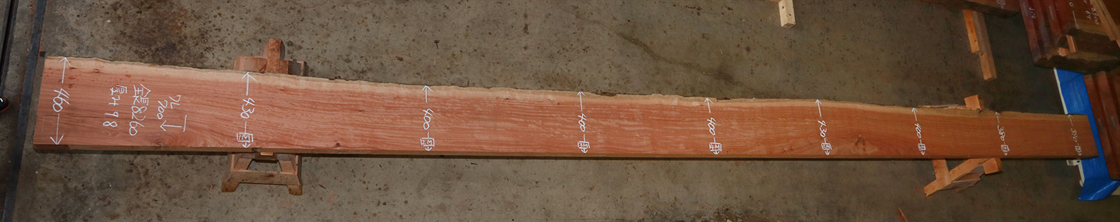 杢目のある綺麗な原木(丸太)から製材して8m以上と3m弱が取れました。乾燥材なのですぐに使えます。柾目なので色々と用途にあわせて作成出来ます。csbo-35~58まで共木です。