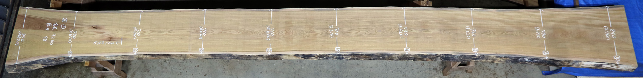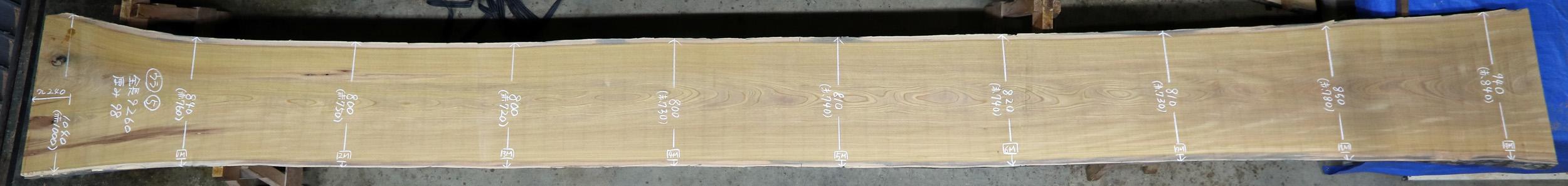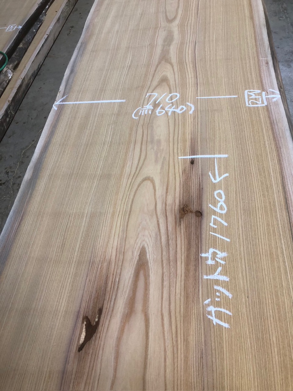 元からの色変わりや穴を避けても7400~の綺麗な無地の天板になります。避けた裏面も無地でcske-56~65まで一本木の共木です。