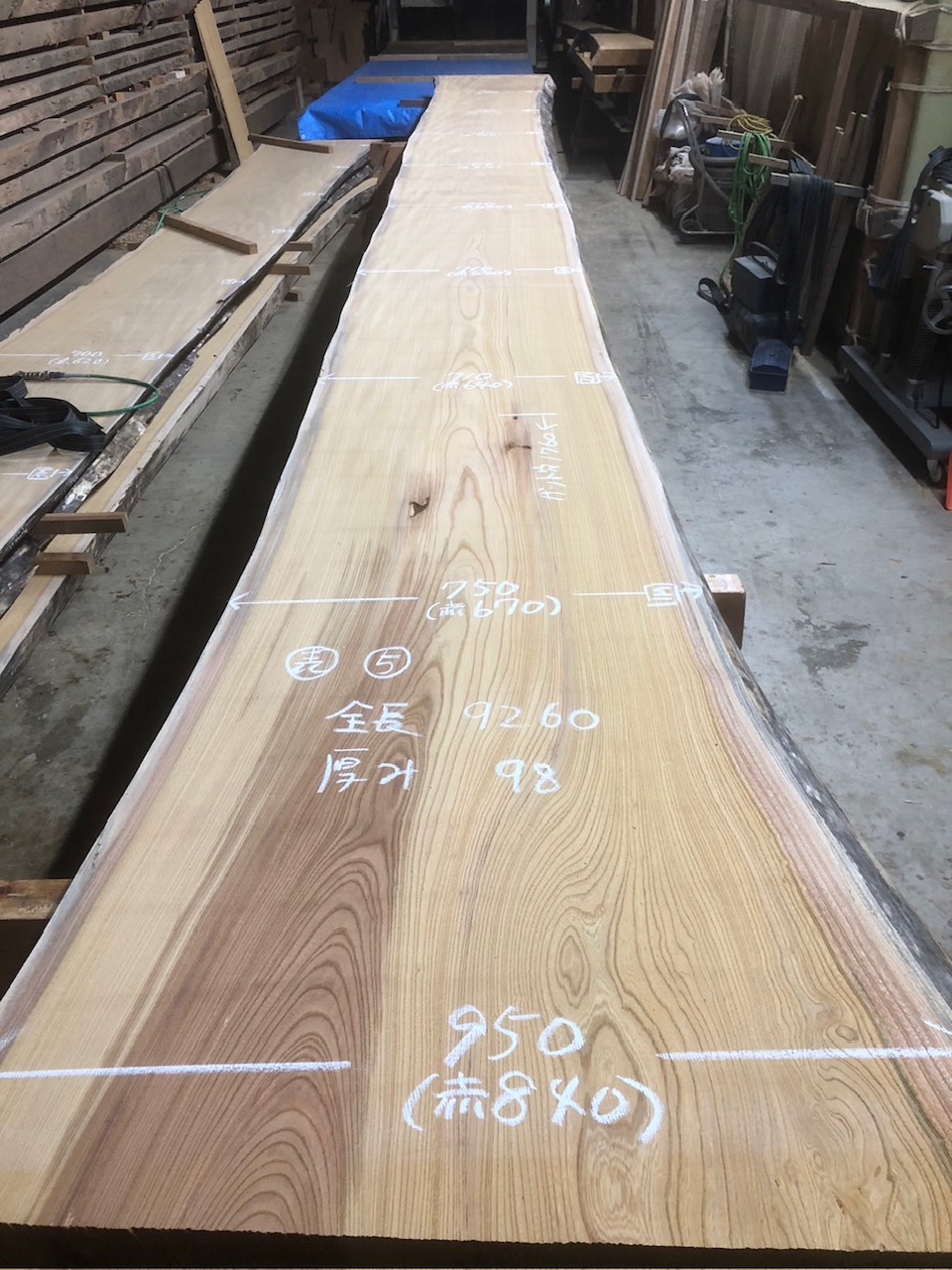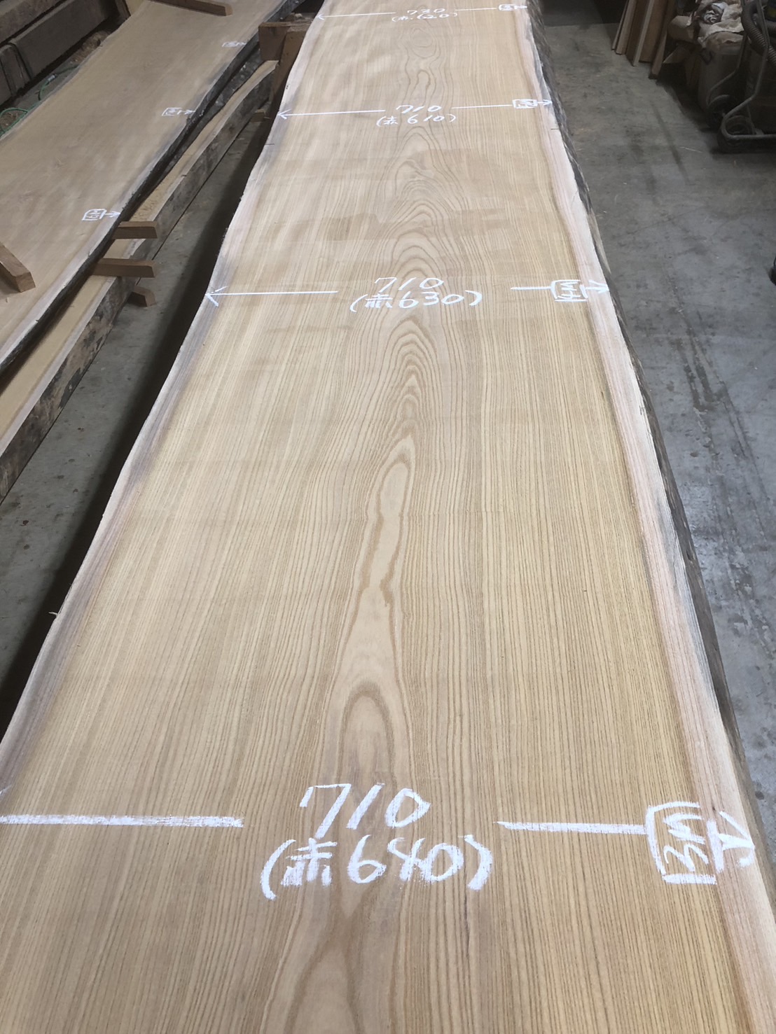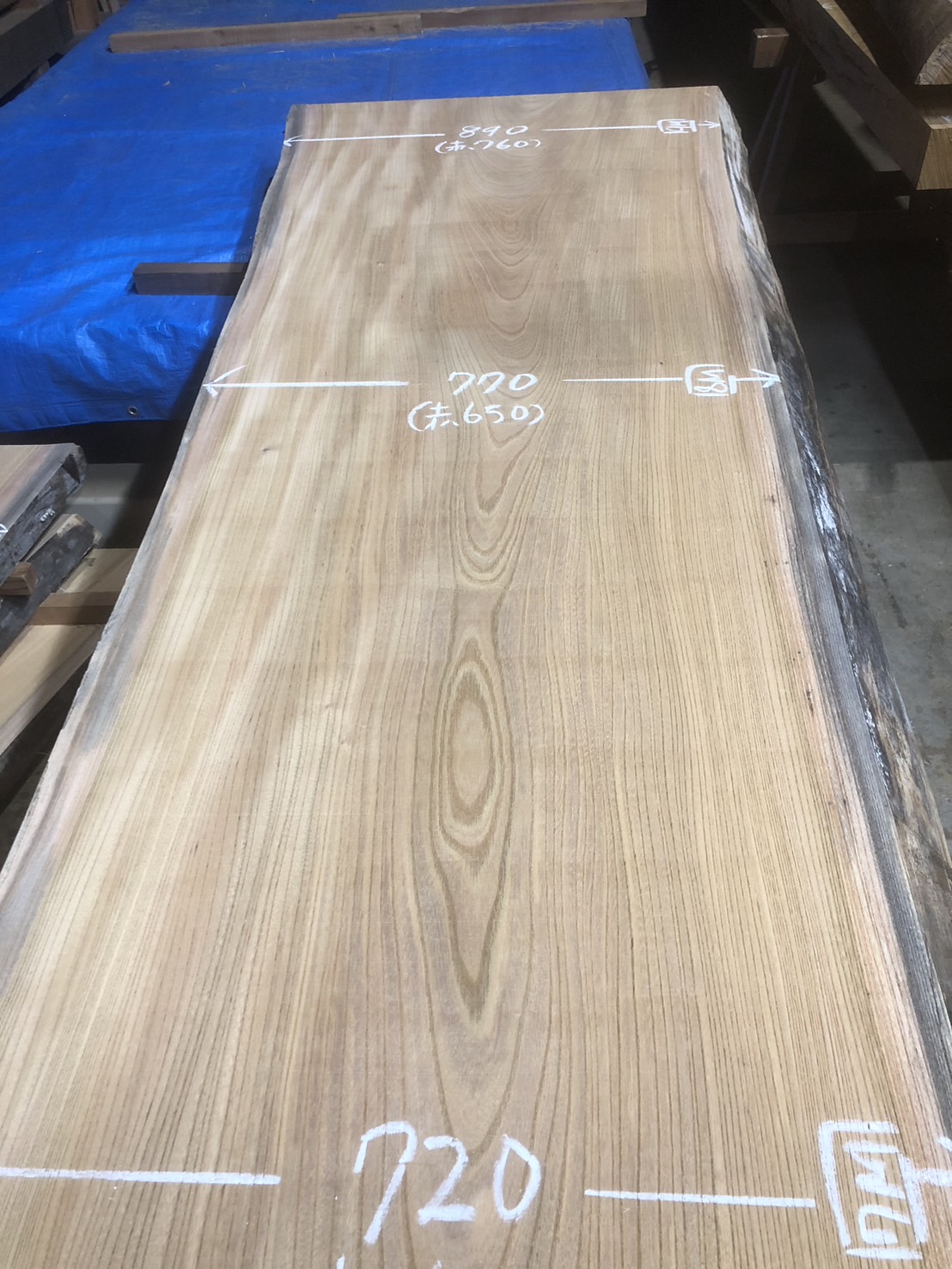 元からの色変わりや穴を避けても7400~の綺麗な無地の天板になります。避けた裏面も無地でcske-56~65まで一本木の共木です。
