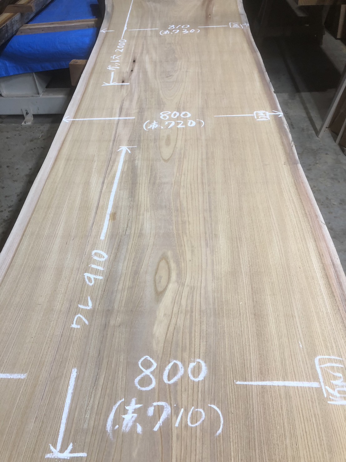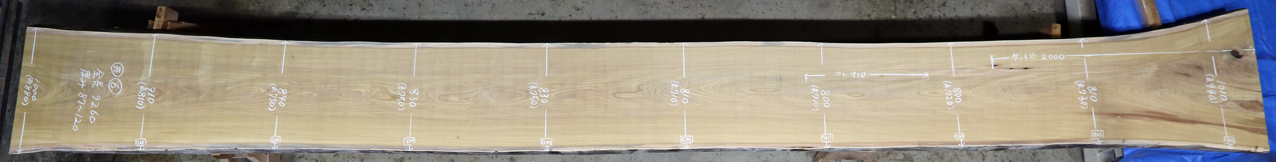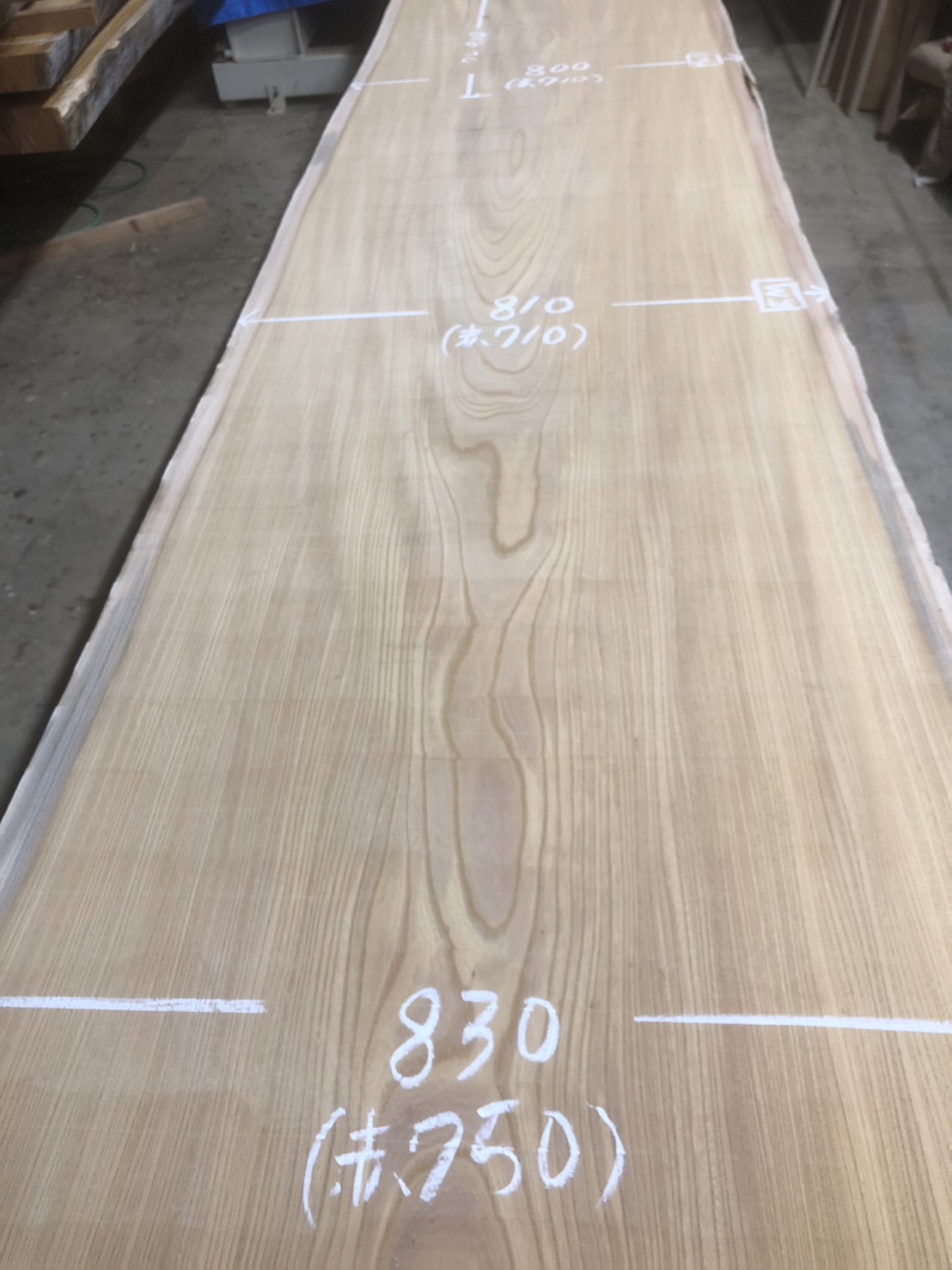 表面7m~の無地で幅800~の幅広材です。(一部柾に薄い割あり)cske-56~65まで一本木の共木です。
