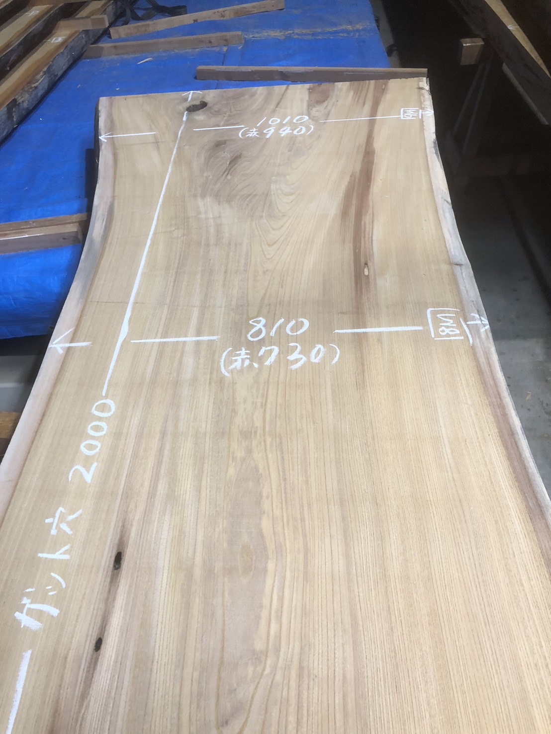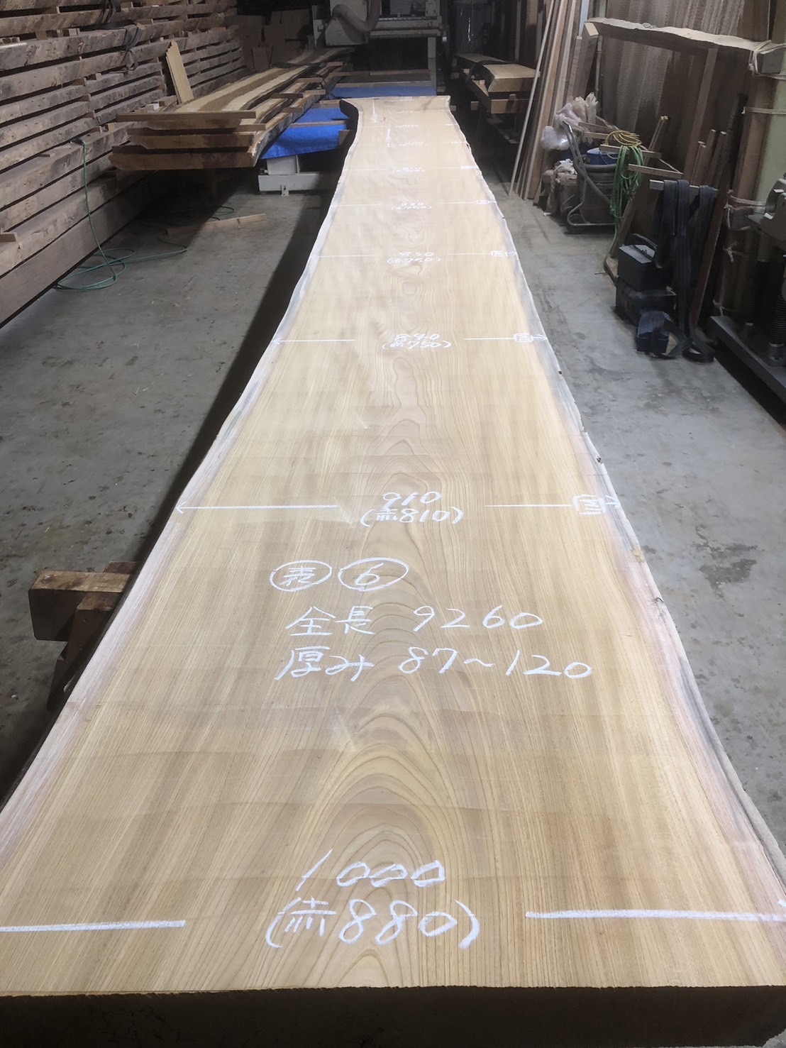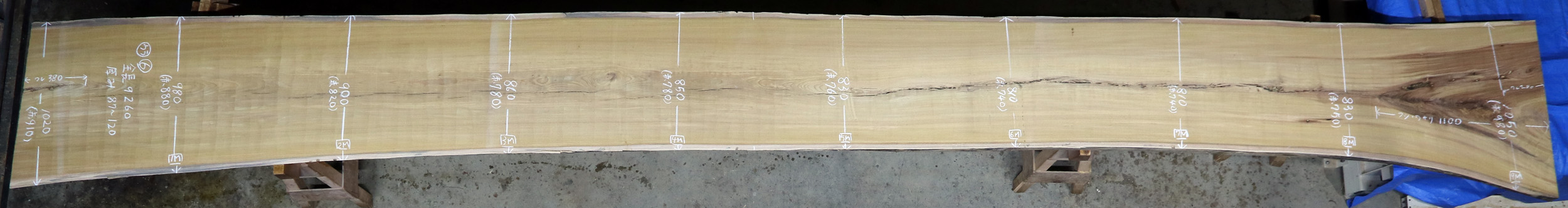表面7m~の無地で幅800~の幅広材です。(一部柾に薄い割あり)cske-56~65まで一本木の共木です。