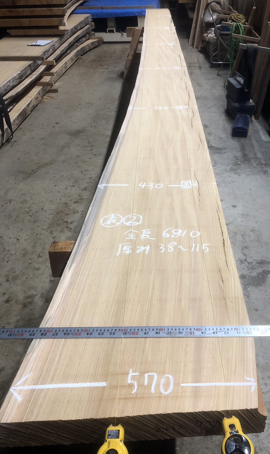表面の糸張りで割れ外し幅250です。cske-56~65まで一本木の共木です。