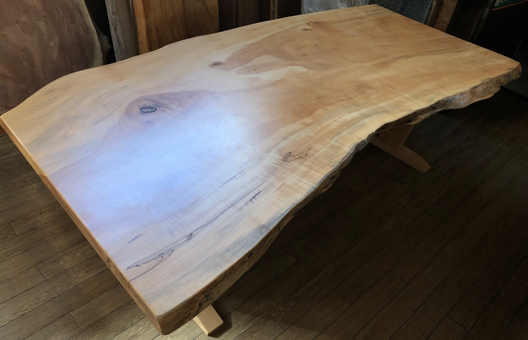 この栃は、ウレタン塗装(艶消し)にて加工込みの価格です。脚付き(全部栃)Ⅴ型貫入れの場合は、d_to-14で650,000円です。